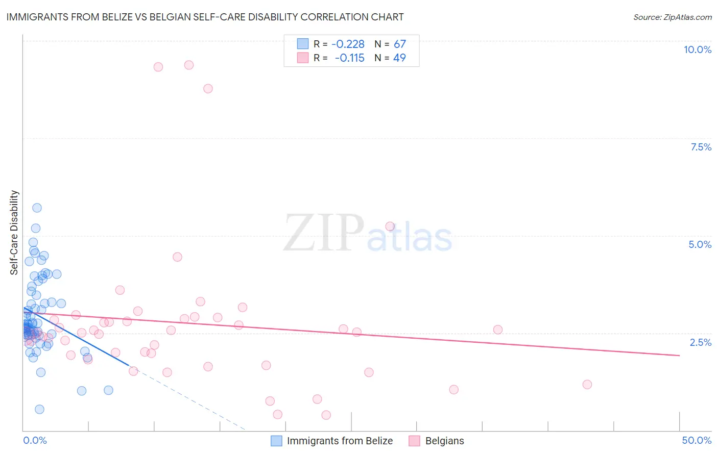 Immigrants from Belize vs Belgian Self-Care Disability Correlation Chart