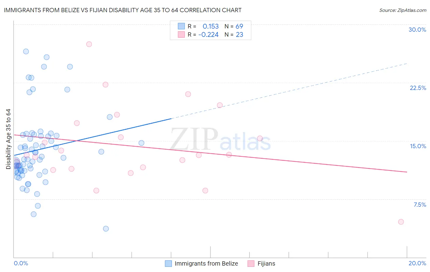 Immigrants from Belize vs Fijian Disability Age 35 to 64 Correlation Chart