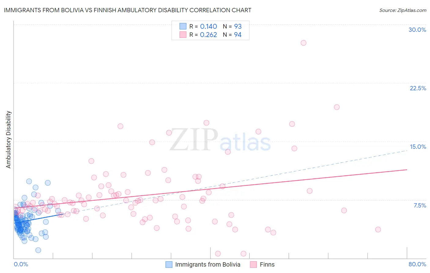 Immigrants from Bolivia vs Finnish Ambulatory Disability Correlation Chart