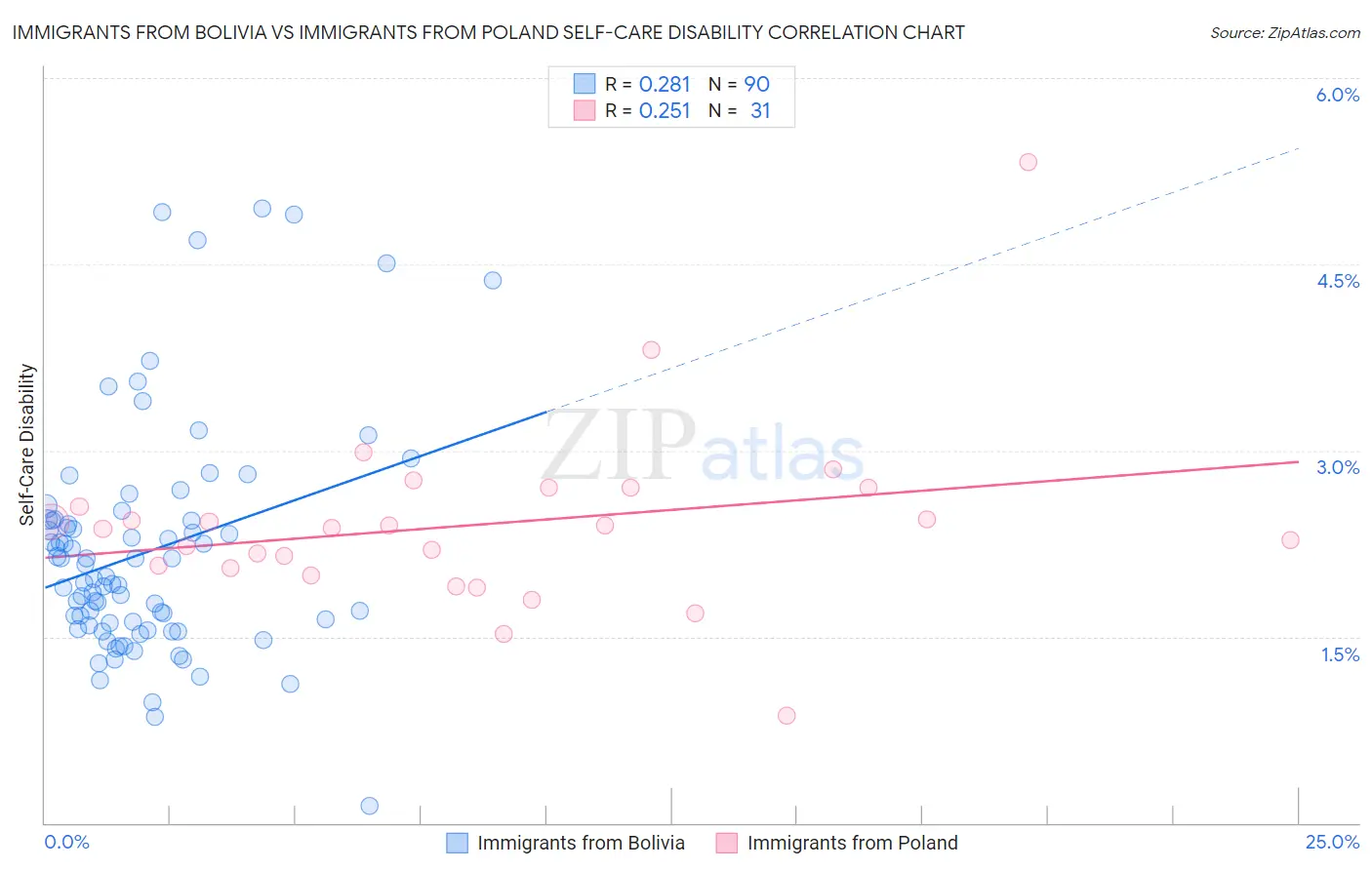 Immigrants from Bolivia vs Immigrants from Poland Self-Care Disability Correlation Chart