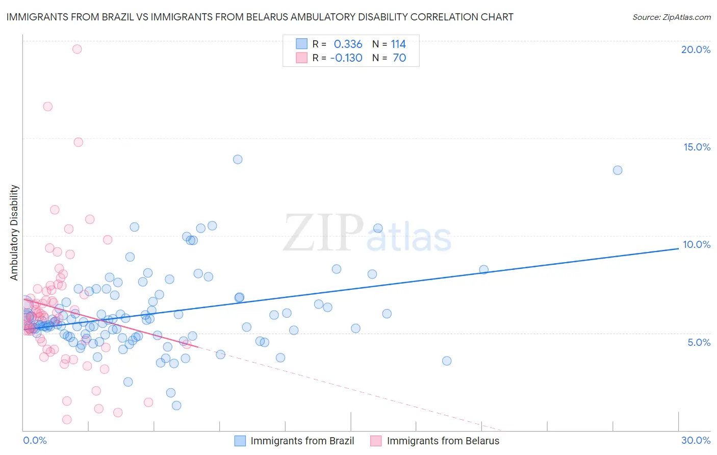 Immigrants from Brazil vs Immigrants from Belarus Ambulatory Disability Correlation Chart