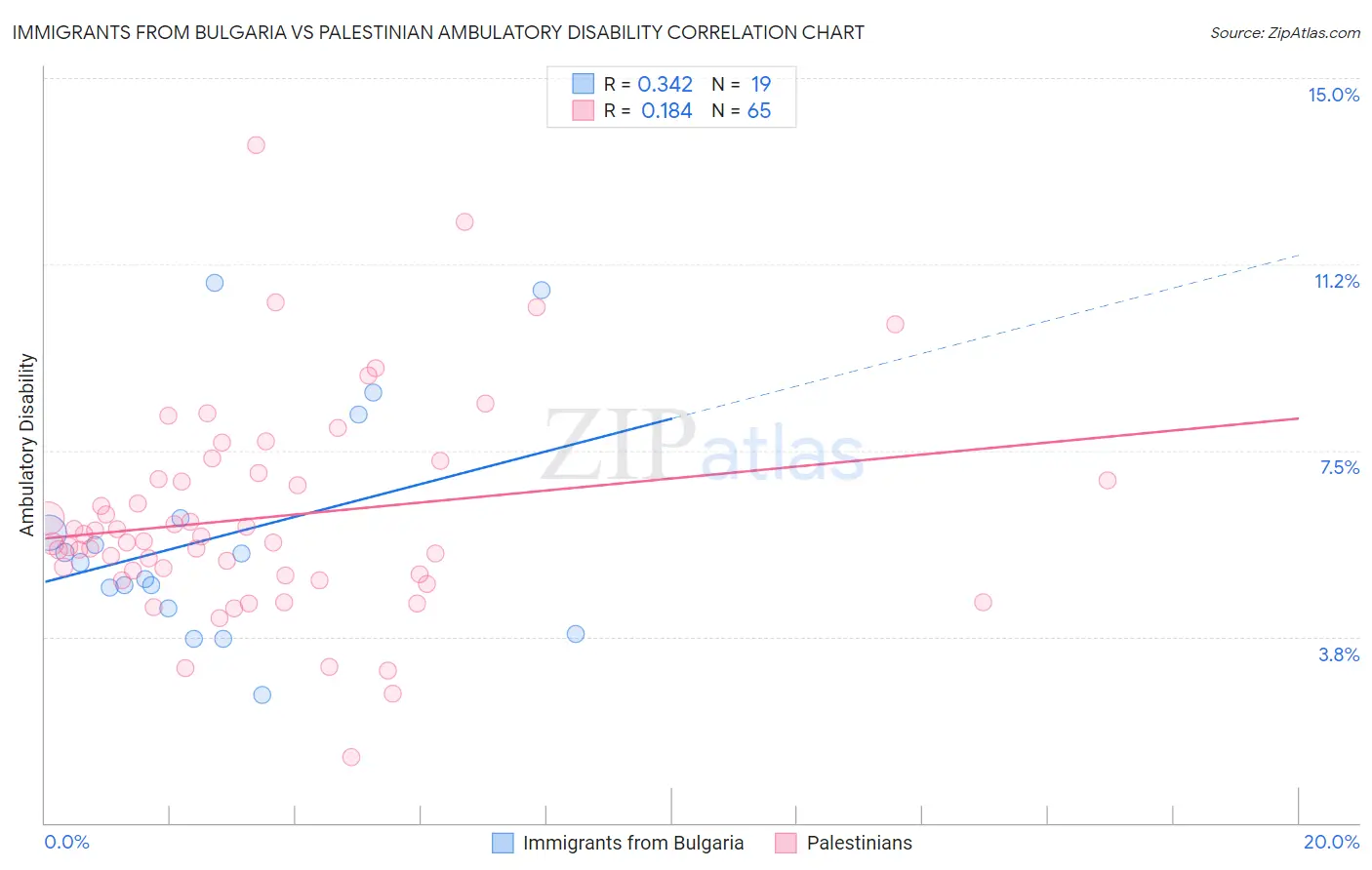 Immigrants from Bulgaria vs Palestinian Ambulatory Disability Correlation Chart