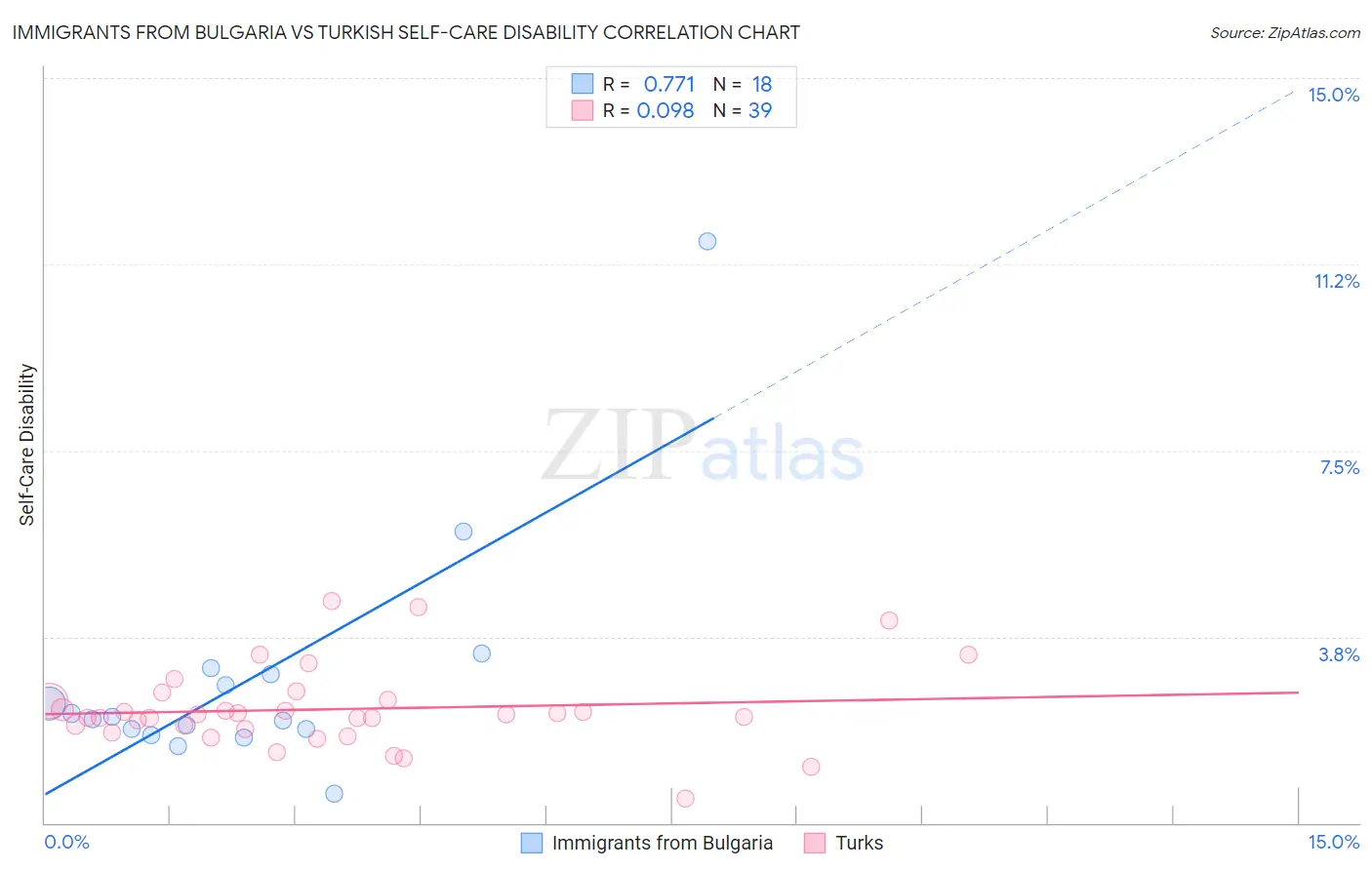 Immigrants from Bulgaria vs Turkish Self-Care Disability Correlation Chart