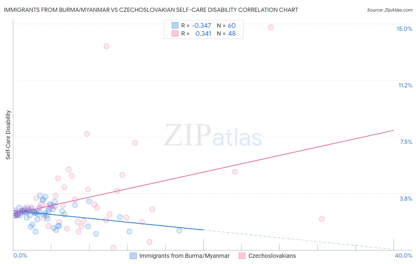 Immigrants from Burma/Myanmar vs Czechoslovakian Self-Care Disability Correlation Chart