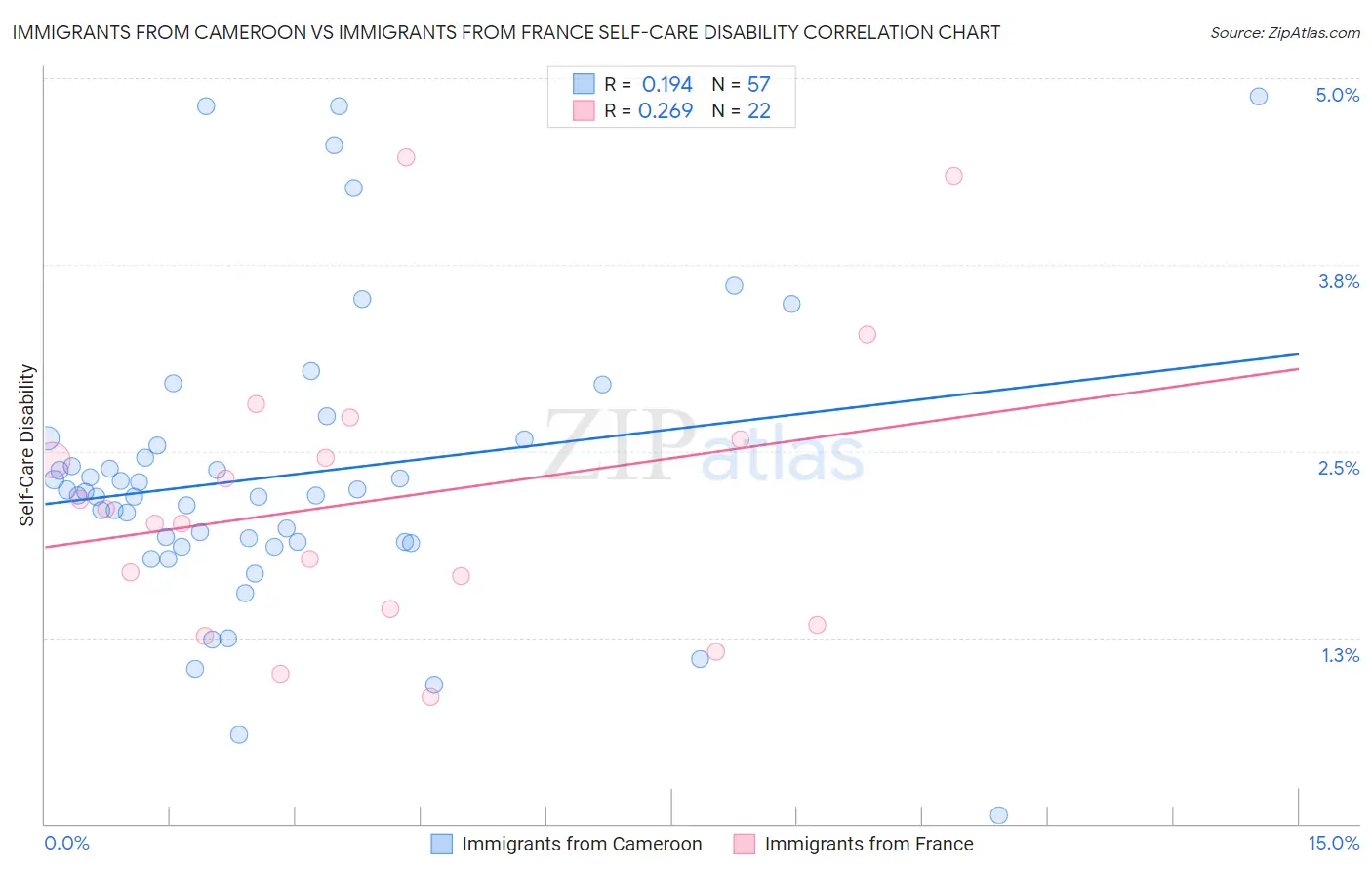 Immigrants from Cameroon vs Immigrants from France Self-Care Disability Correlation Chart