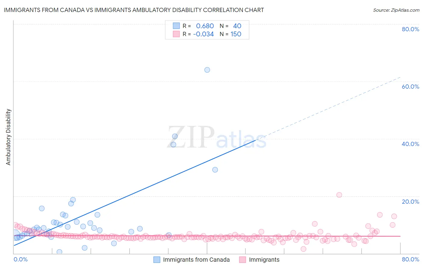 Immigrants from Canada vs Immigrants Ambulatory Disability Correlation Chart