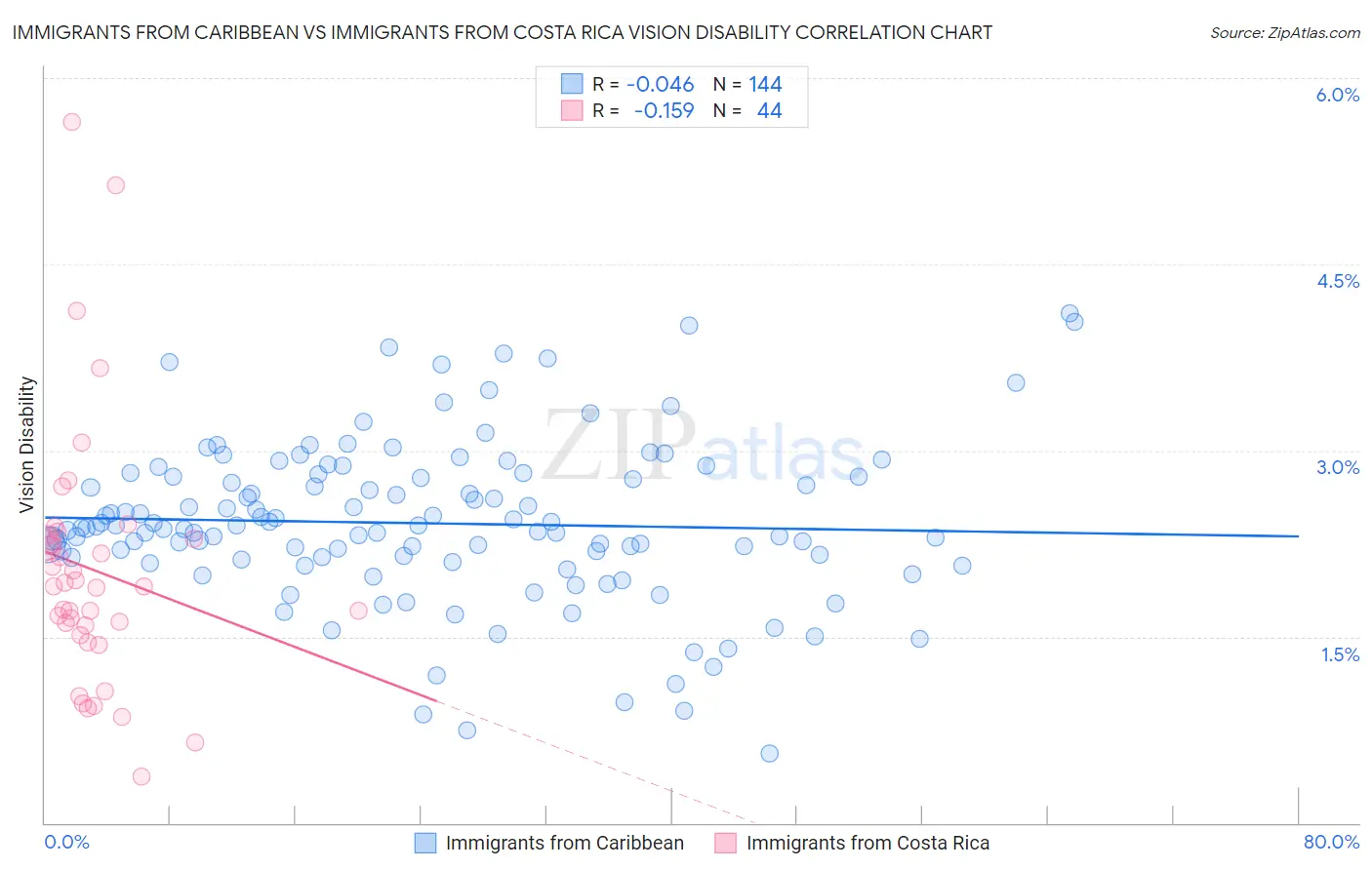 Immigrants from Caribbean vs Immigrants from Costa Rica Vision Disability Correlation Chart