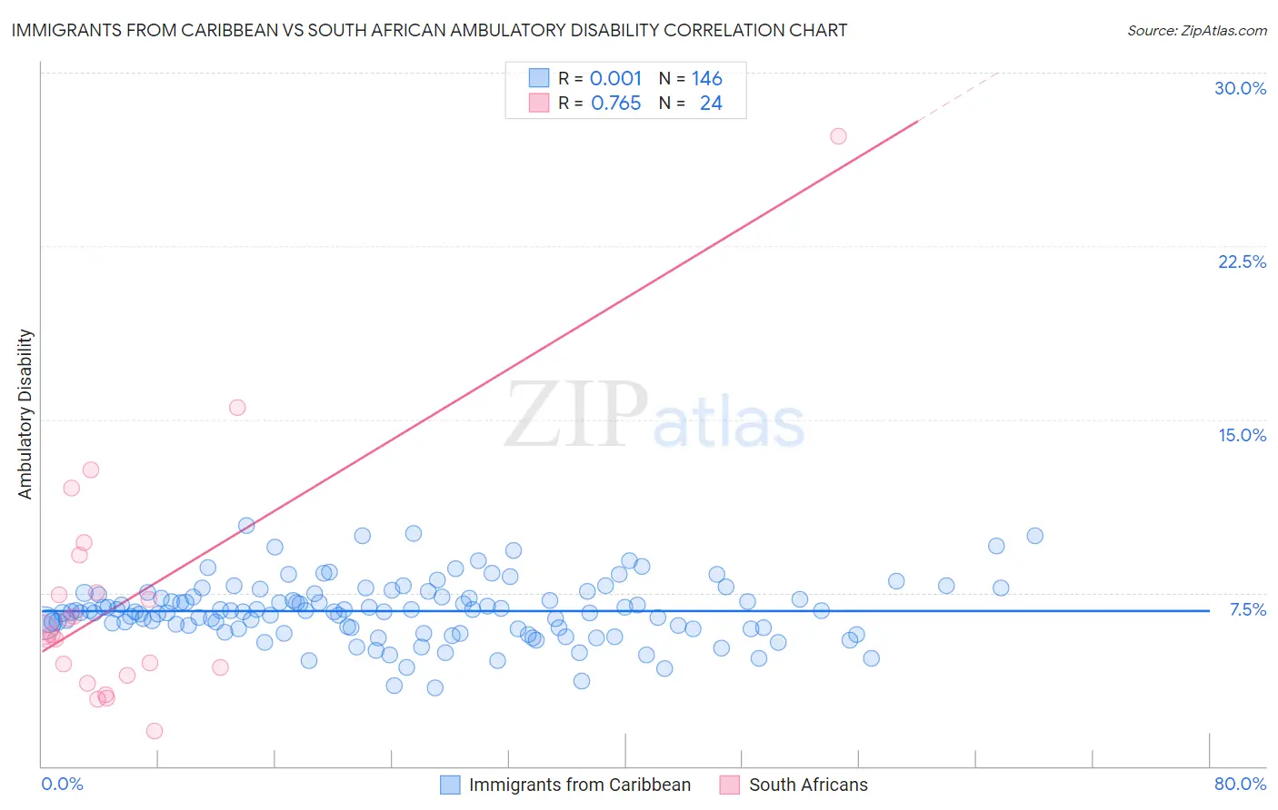 Immigrants from Caribbean vs South African Ambulatory Disability Correlation Chart