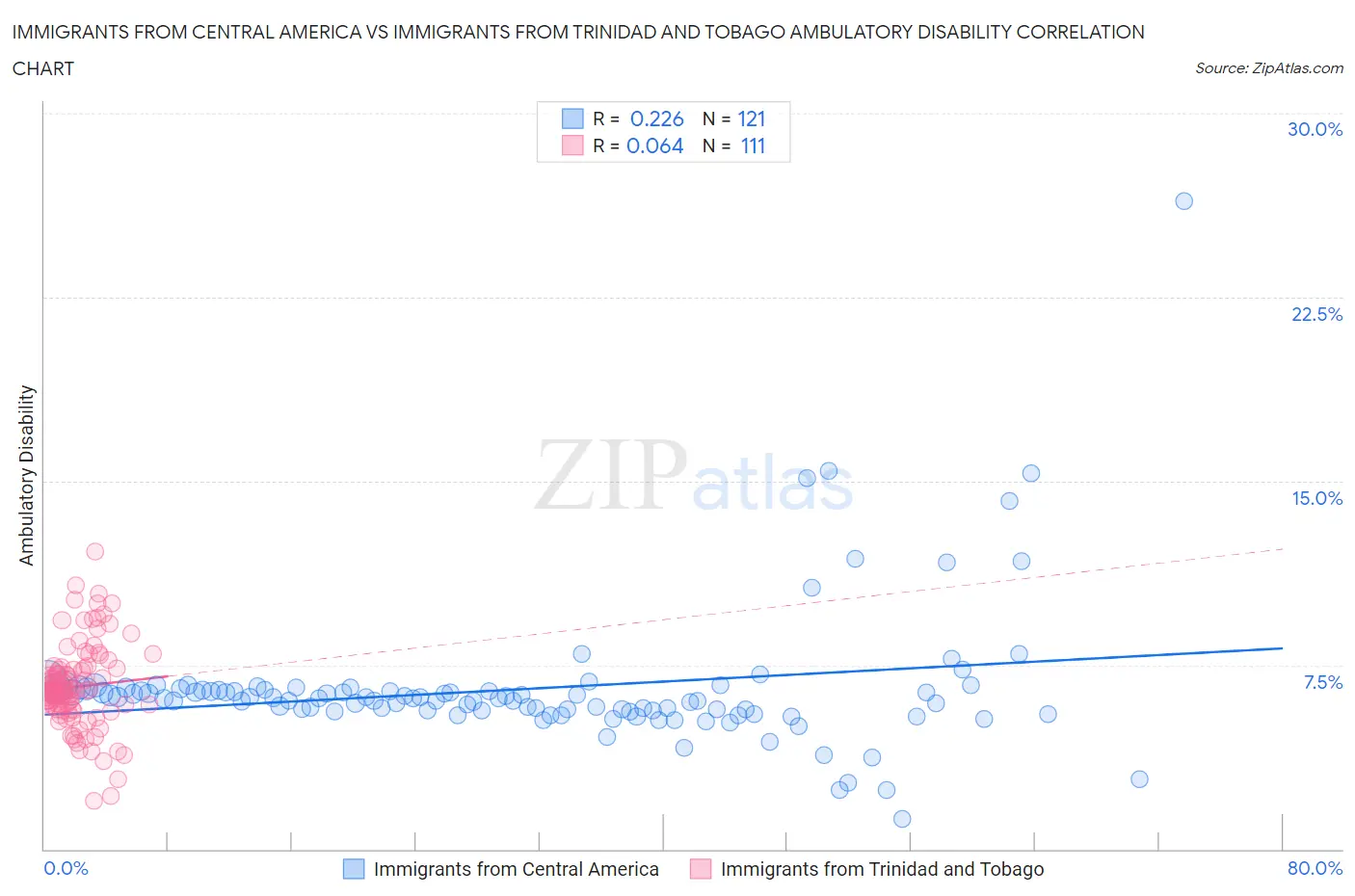 Immigrants from Central America vs Immigrants from Trinidad and Tobago Ambulatory Disability Correlation Chart
