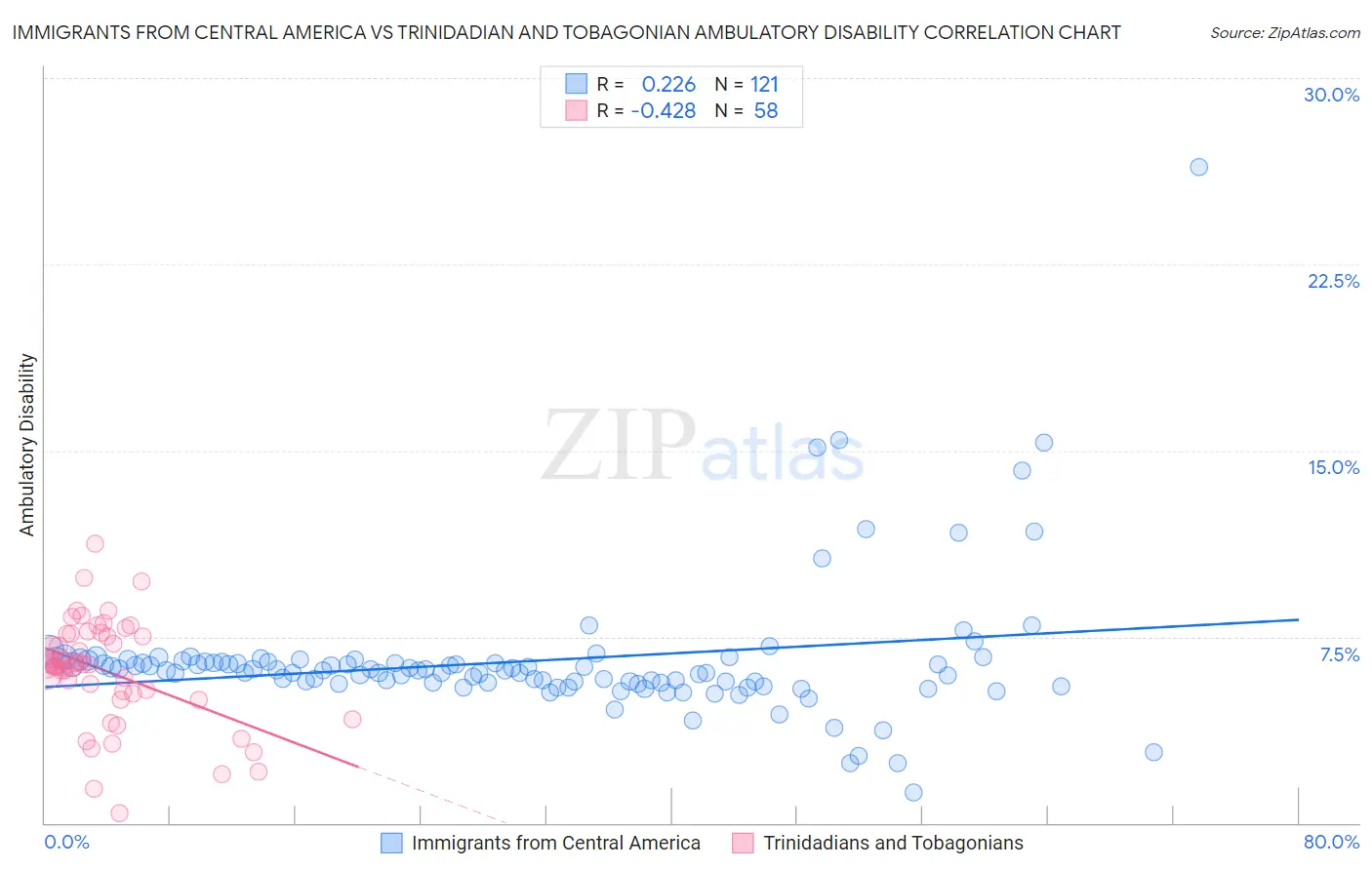 Immigrants from Central America vs Trinidadian and Tobagonian Ambulatory Disability Correlation Chart