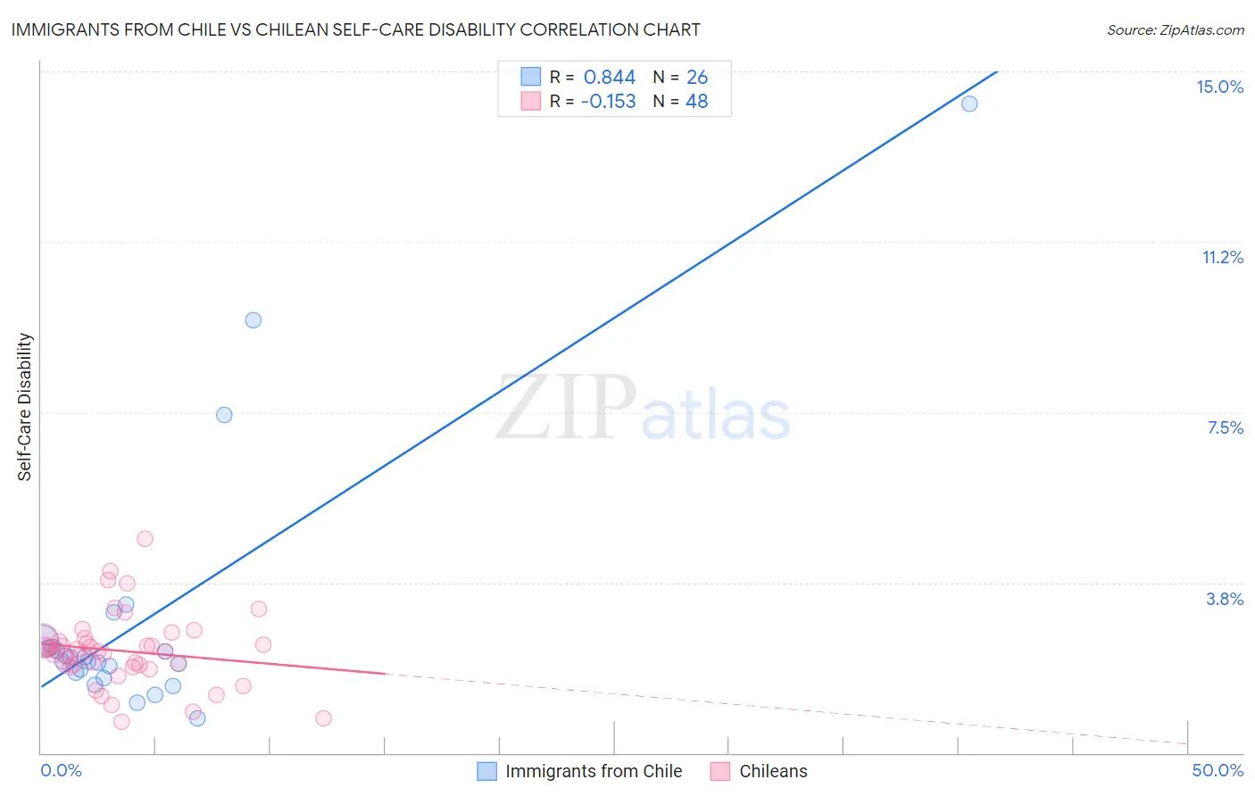 Immigrants from Chile vs Chilean Self-Care Disability Correlation Chart