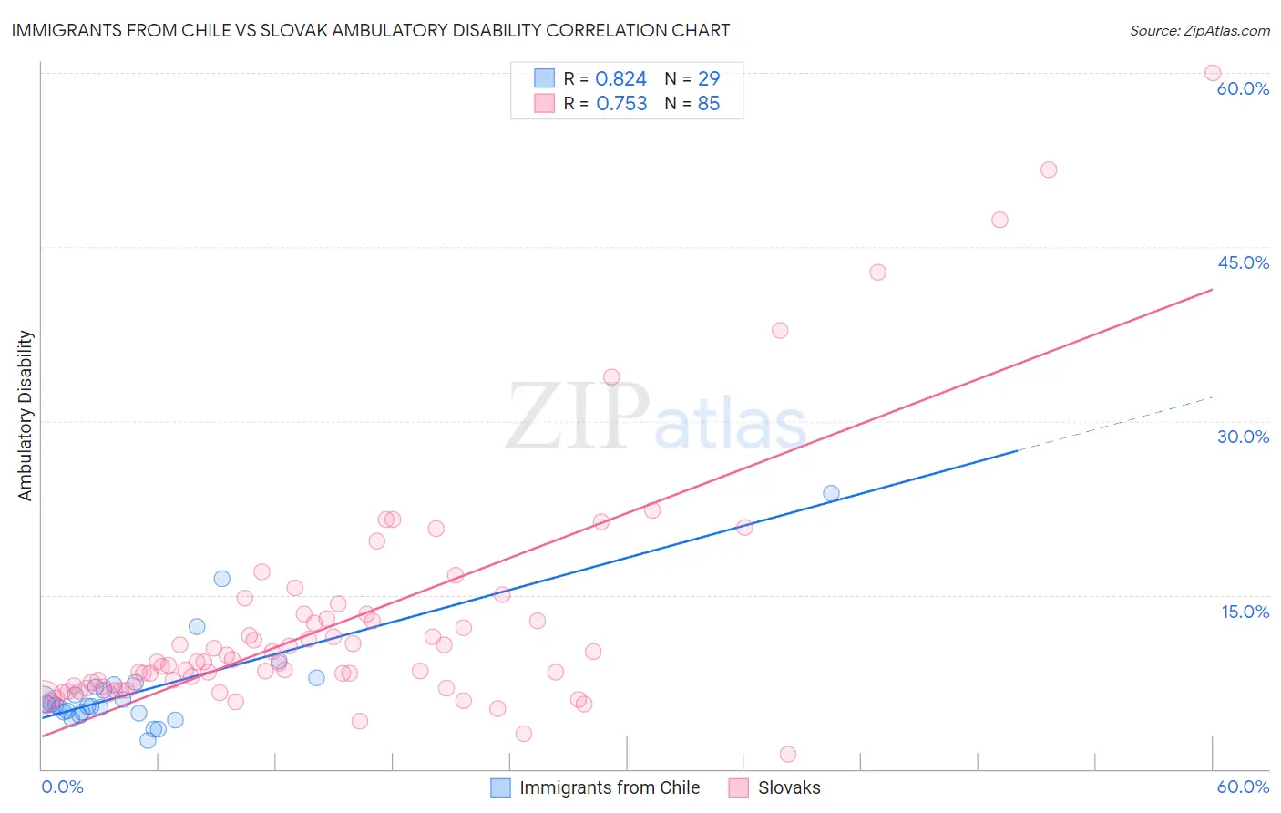 Immigrants from Chile vs Slovak Ambulatory Disability Correlation Chart