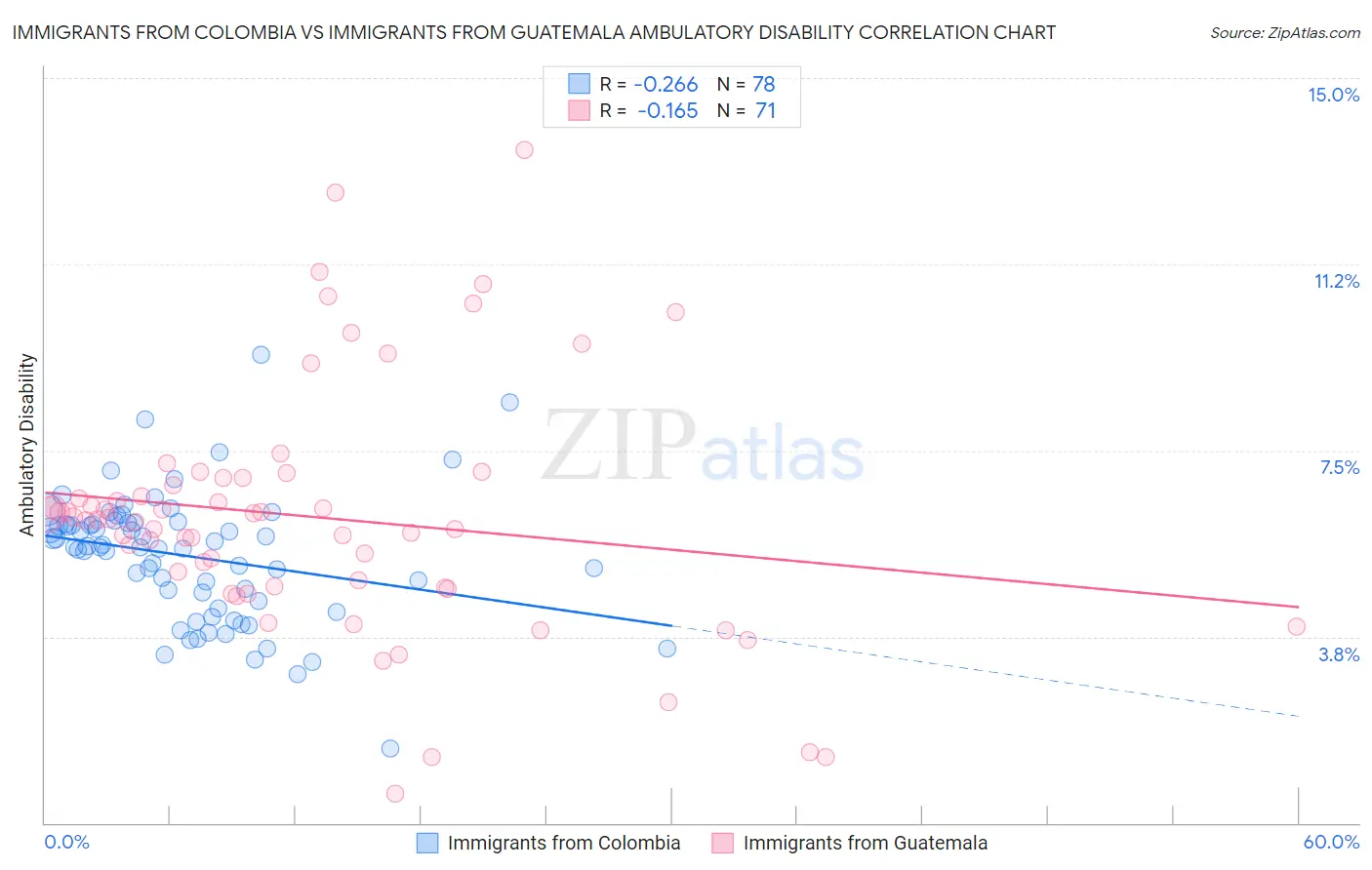 Immigrants from Colombia vs Immigrants from Guatemala Ambulatory Disability Correlation Chart