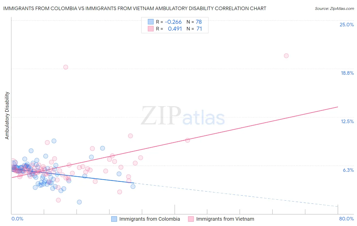 Immigrants from Colombia vs Immigrants from Vietnam Ambulatory Disability Correlation Chart