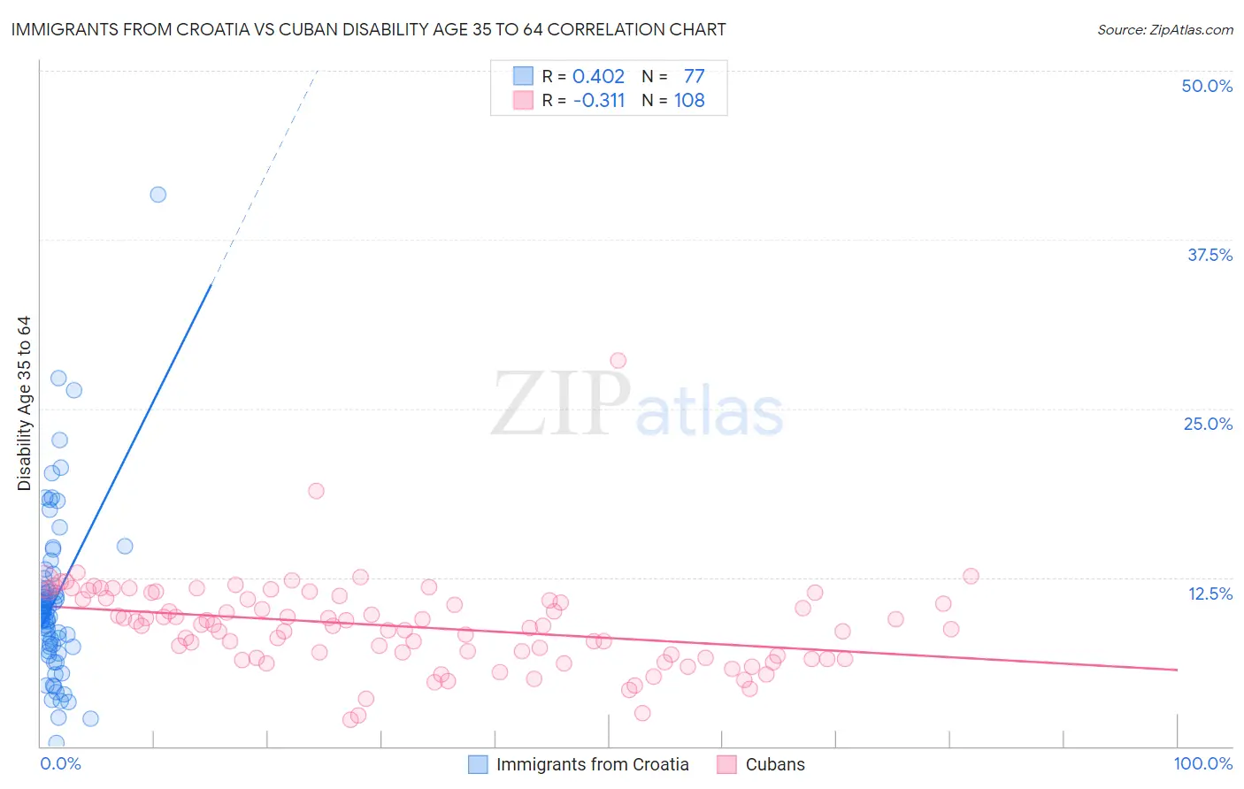 Immigrants from Croatia vs Cuban Disability Age 35 to 64 Correlation Chart