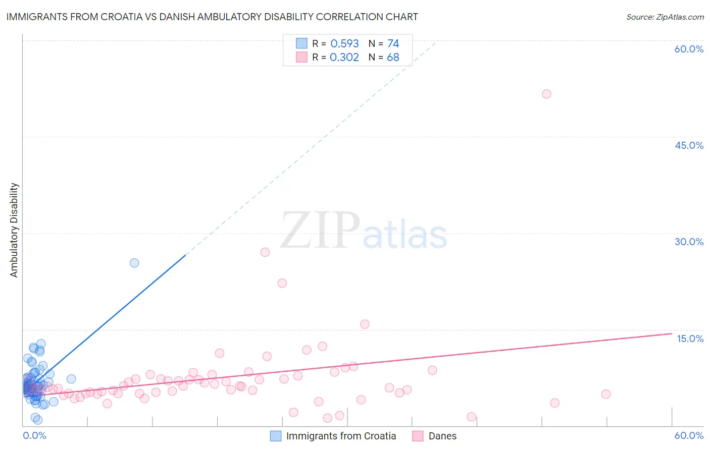 Immigrants from Croatia vs Danish Ambulatory Disability Correlation Chart