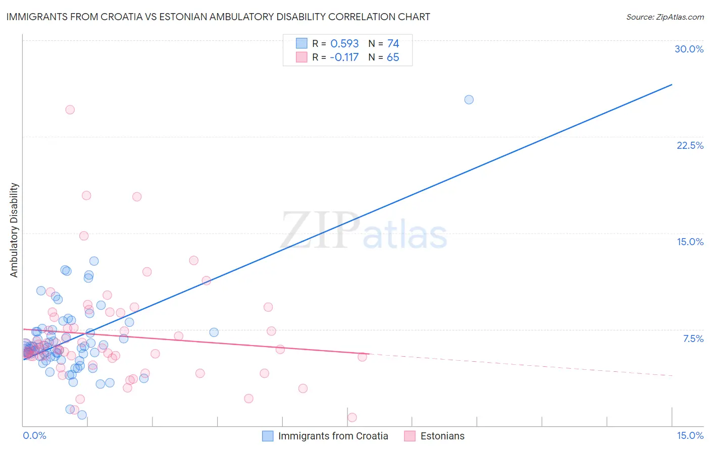 Immigrants from Croatia vs Estonian Ambulatory Disability Correlation Chart
