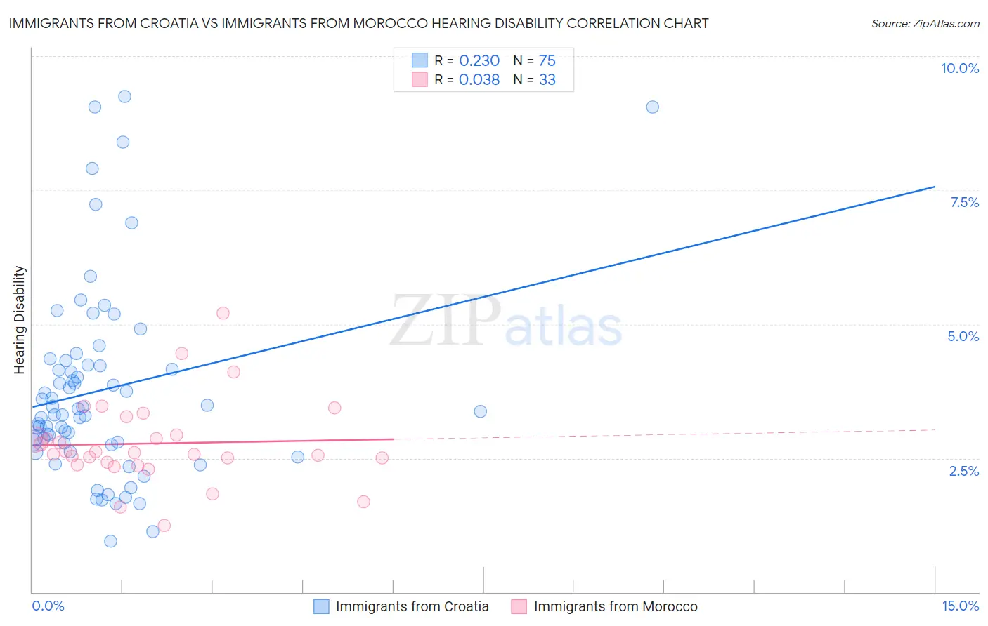 Immigrants from Croatia vs Immigrants from Morocco Hearing Disability Correlation Chart