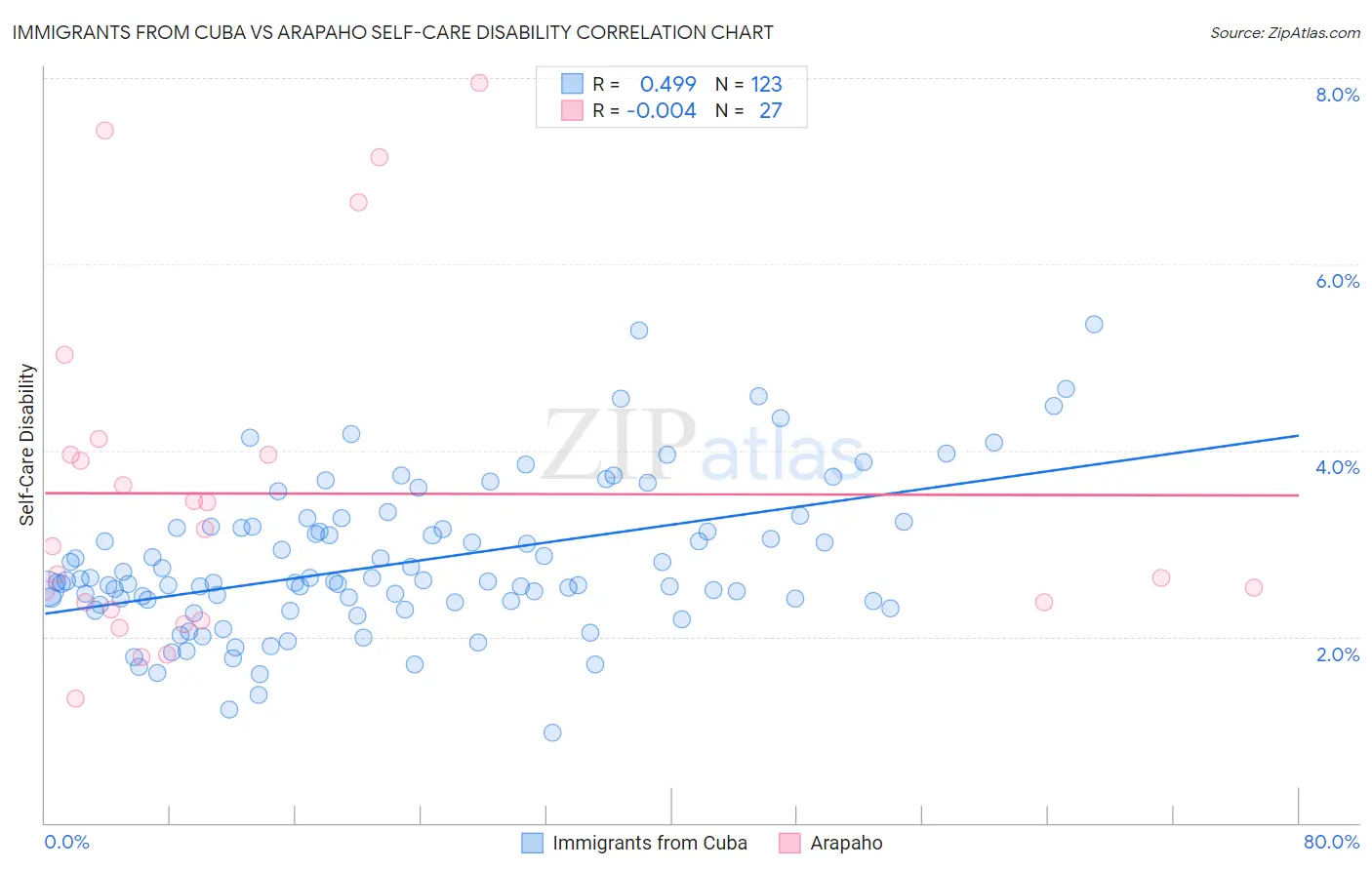 Immigrants from Cuba vs Arapaho Self-Care Disability Correlation Chart
