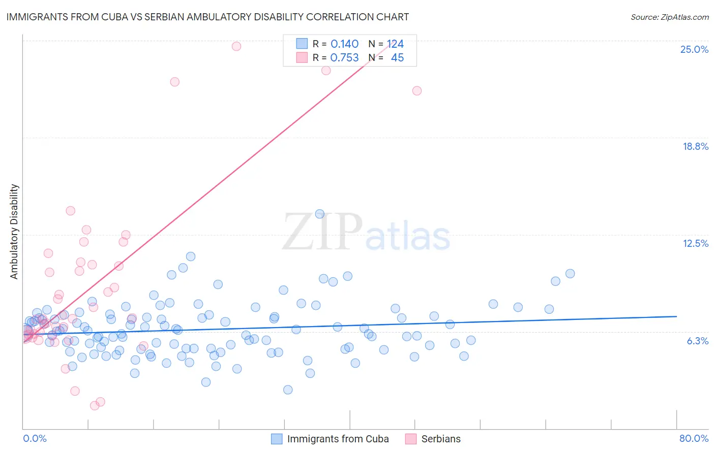 Immigrants from Cuba vs Serbian Ambulatory Disability Correlation Chart