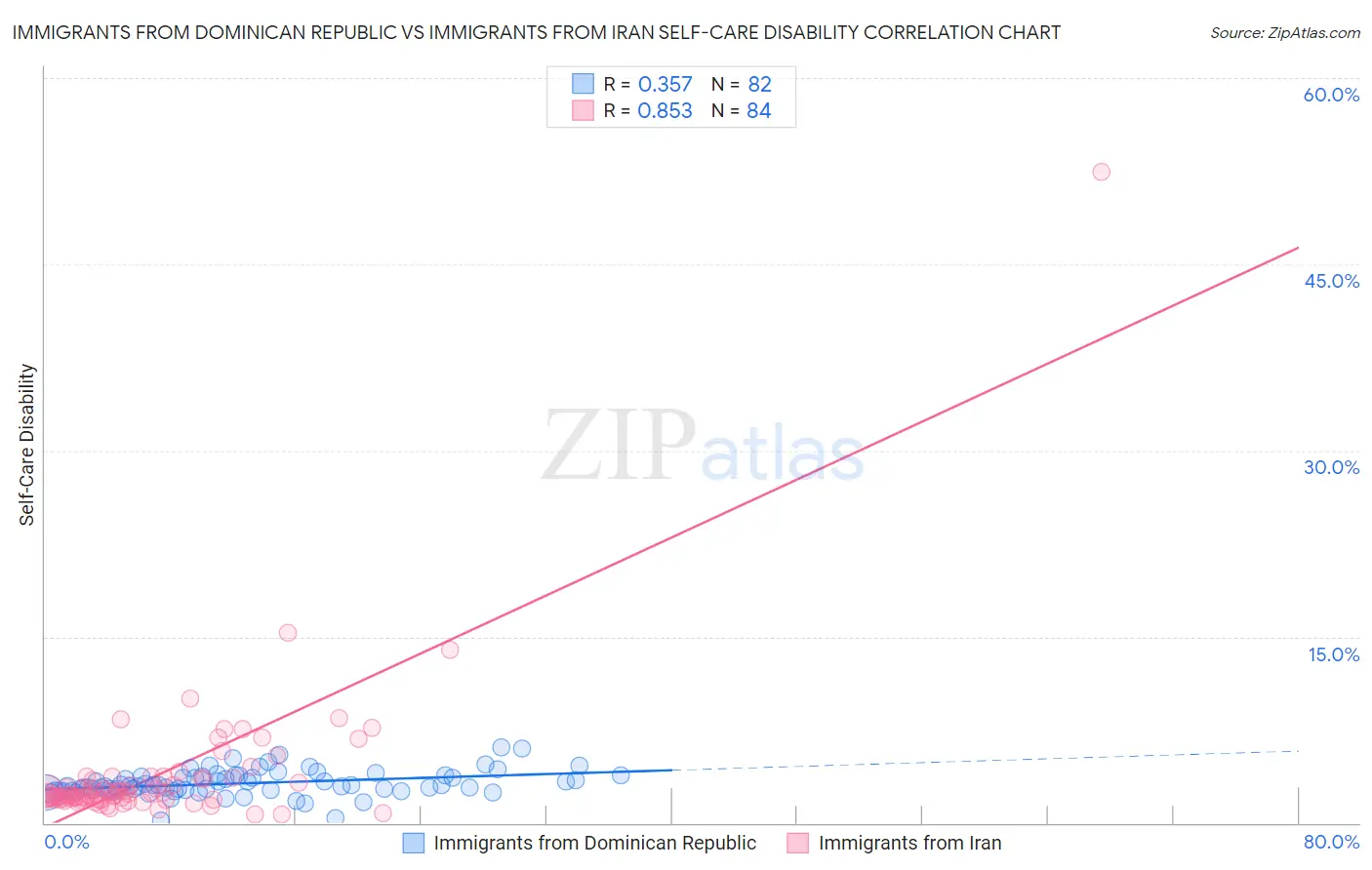 Immigrants from Dominican Republic vs Immigrants from Iran Self-Care Disability Correlation Chart