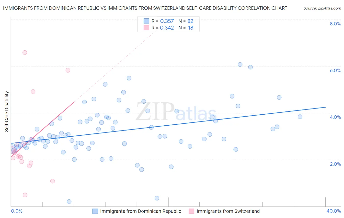 Immigrants from Dominican Republic vs Immigrants from Switzerland Self-Care Disability Correlation Chart