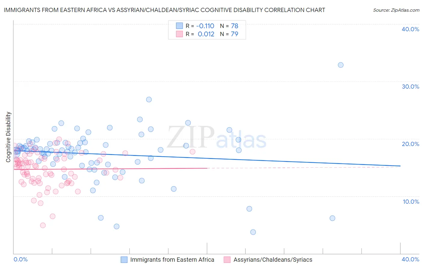 Immigrants from Eastern Africa vs Assyrian/Chaldean/Syriac Cognitive Disability Correlation Chart