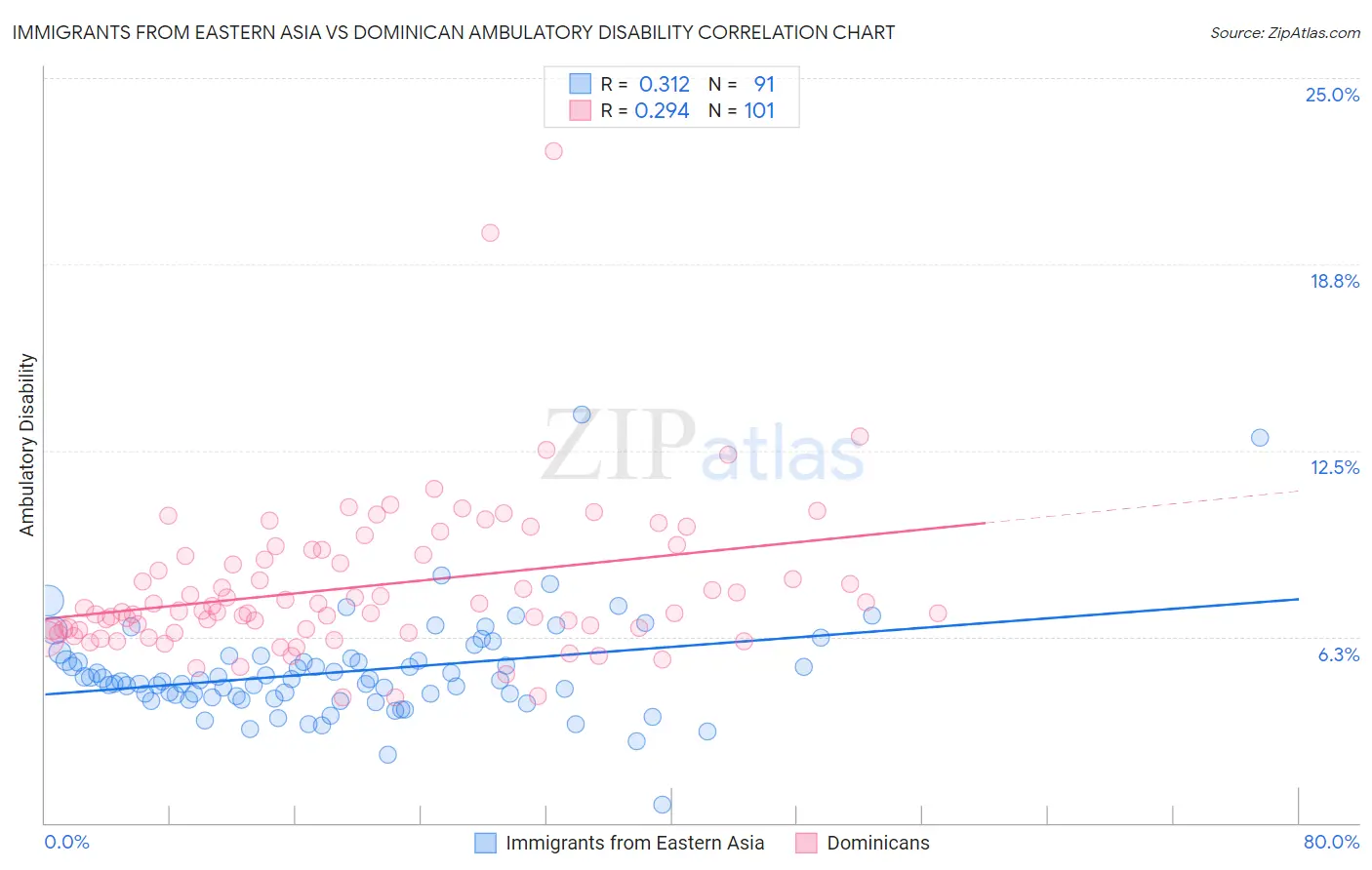 Immigrants from Eastern Asia vs Dominican Ambulatory Disability Correlation Chart