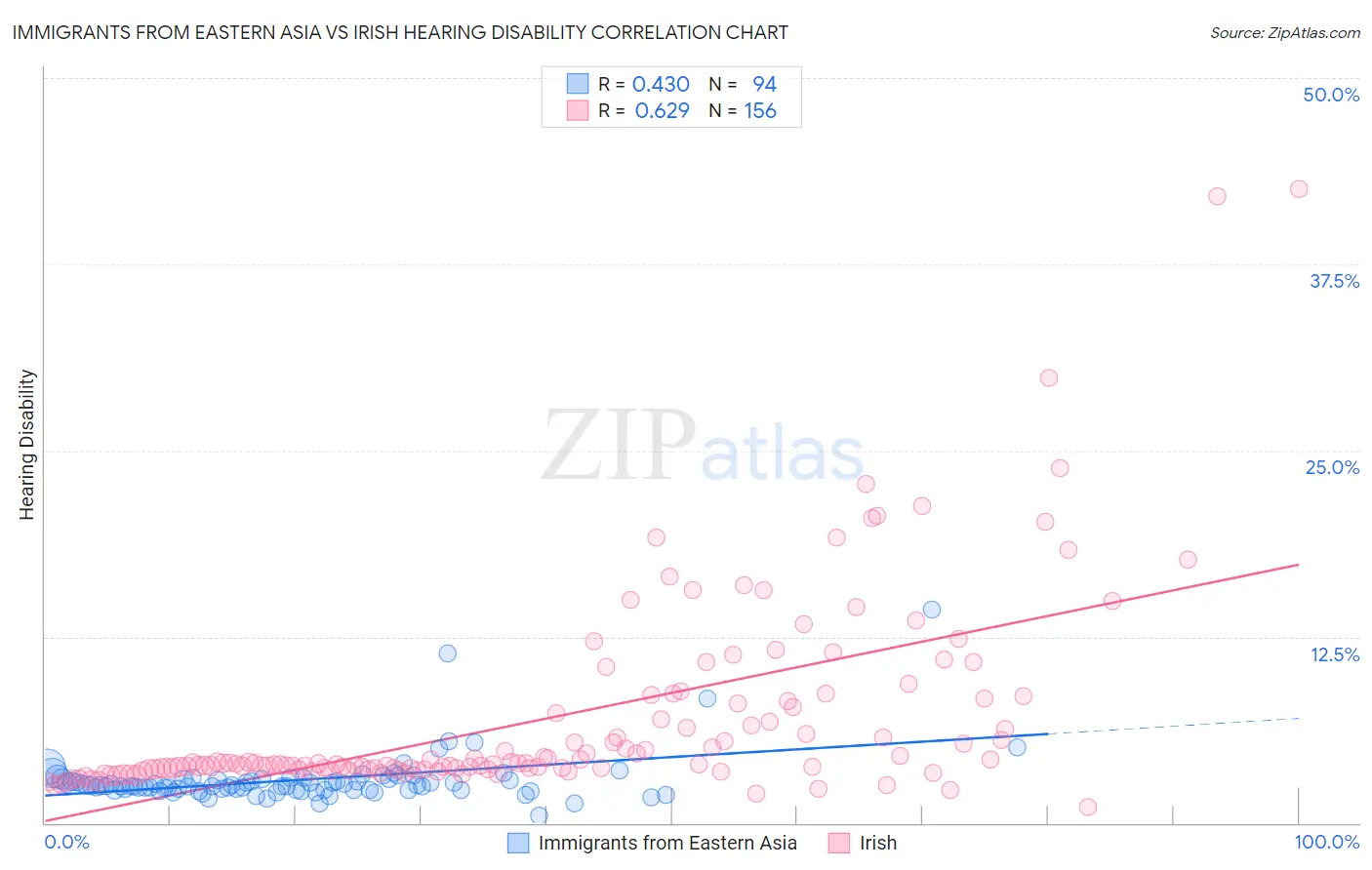 Immigrants from Eastern Asia vs Irish Hearing Disability Correlation Chart
