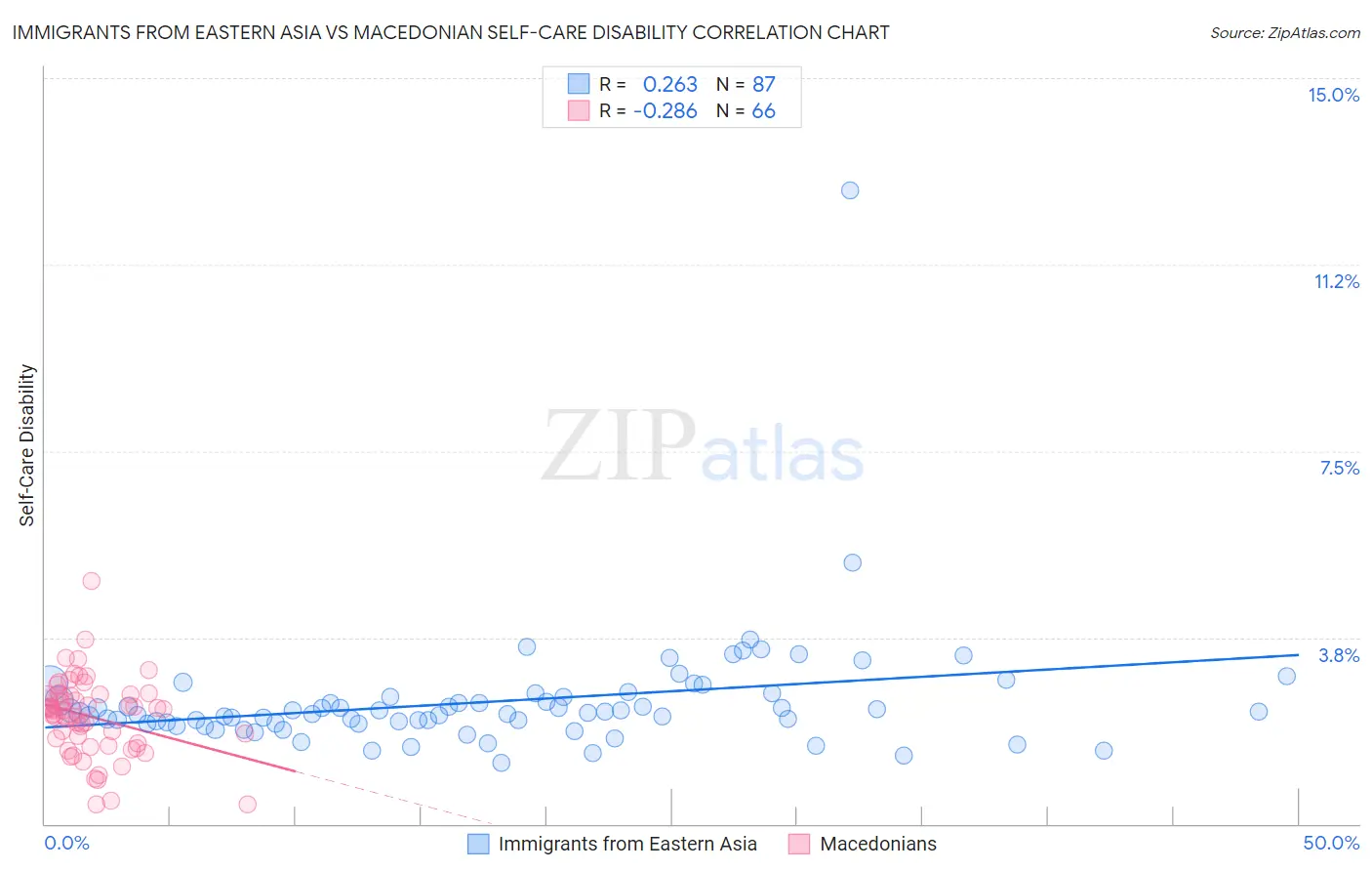 Immigrants from Eastern Asia vs Macedonian Self-Care Disability Correlation Chart