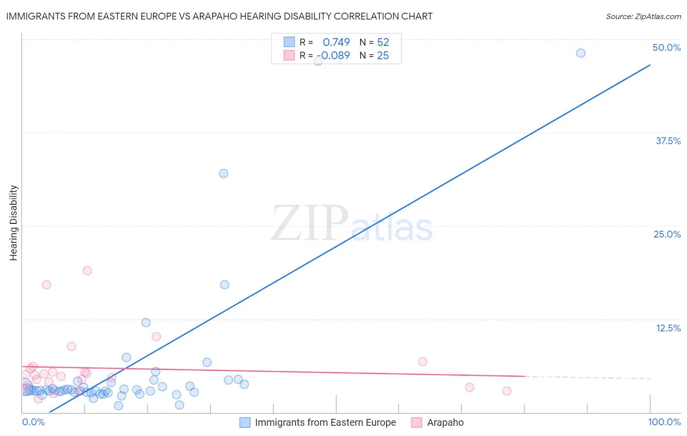 Immigrants from Eastern Europe vs Arapaho Hearing Disability Correlation Chart