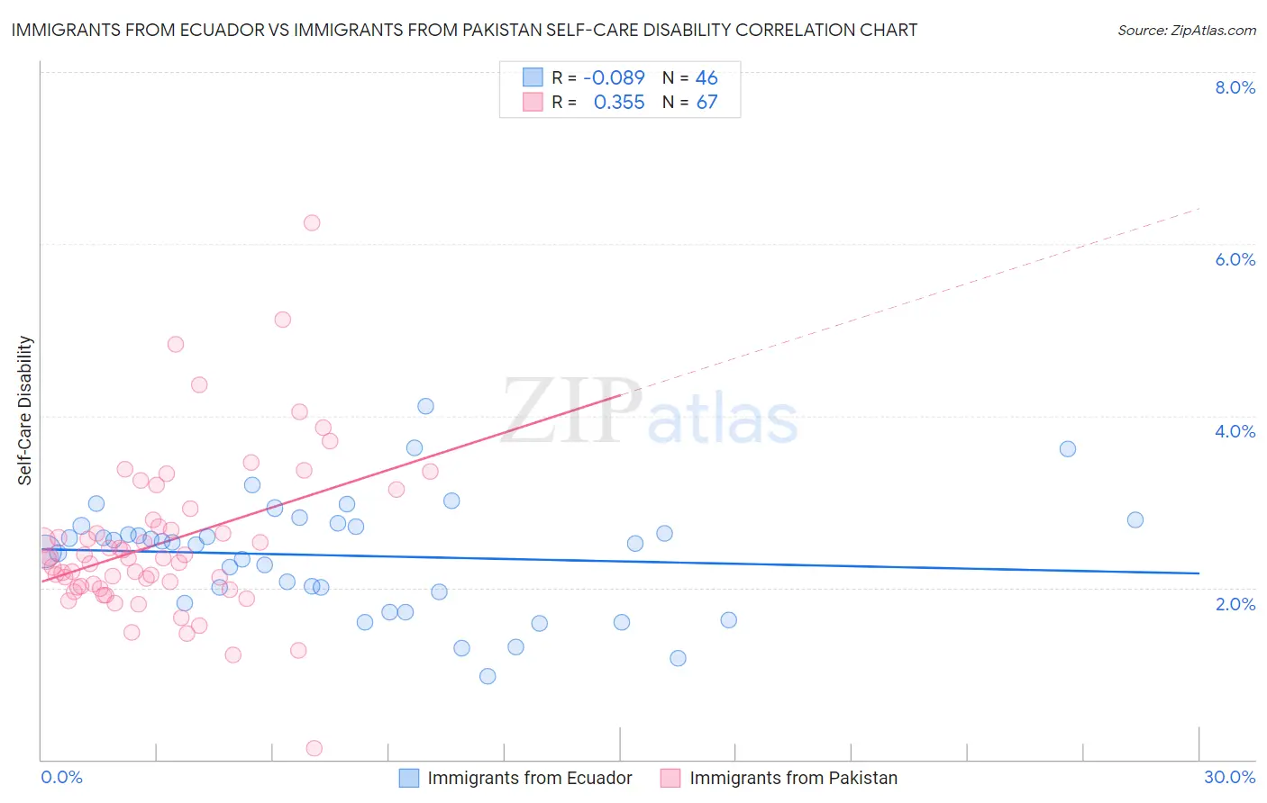 Immigrants from Ecuador vs Immigrants from Pakistan Self-Care Disability Correlation Chart