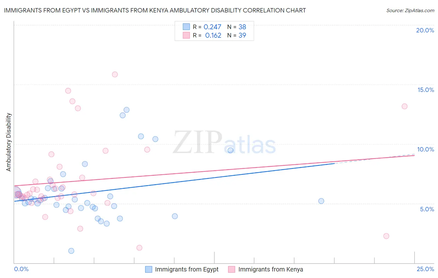Immigrants from Egypt vs Immigrants from Kenya Ambulatory Disability Correlation Chart