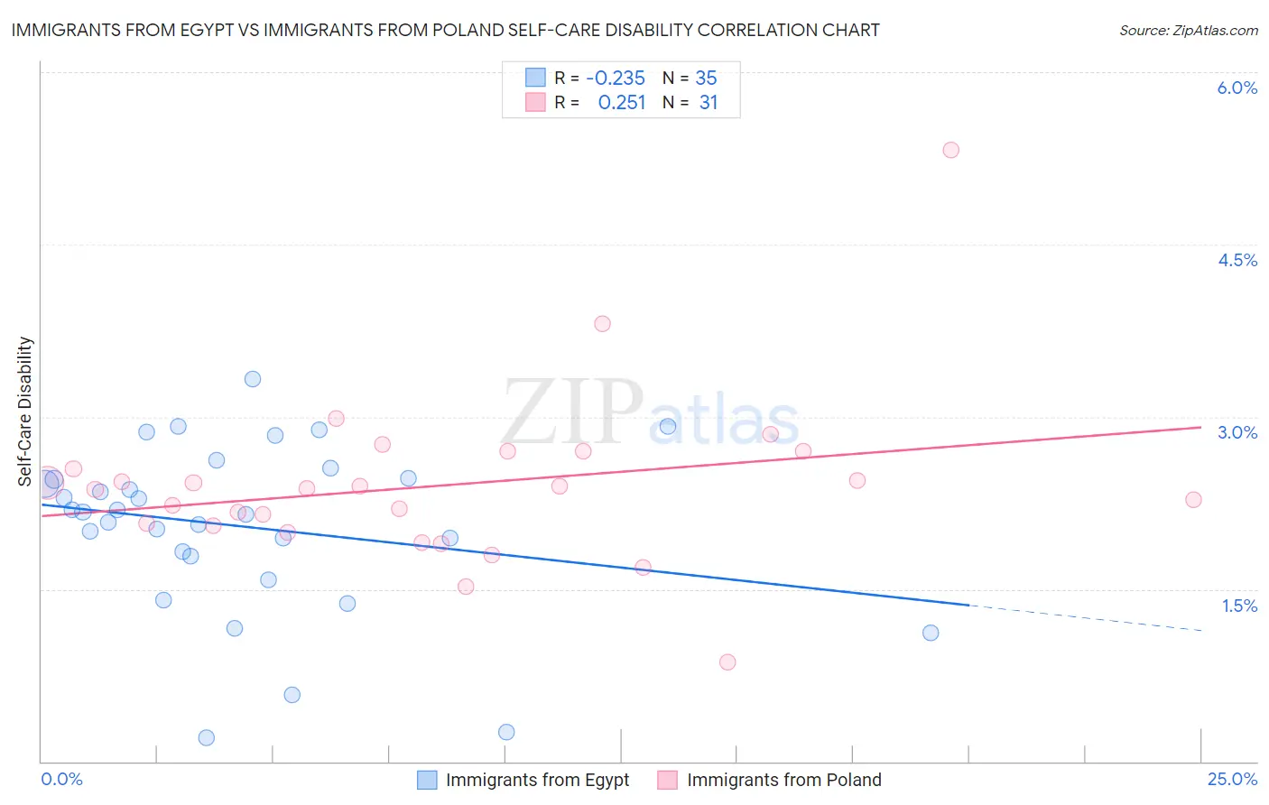 Immigrants from Egypt vs Immigrants from Poland Self-Care Disability Correlation Chart