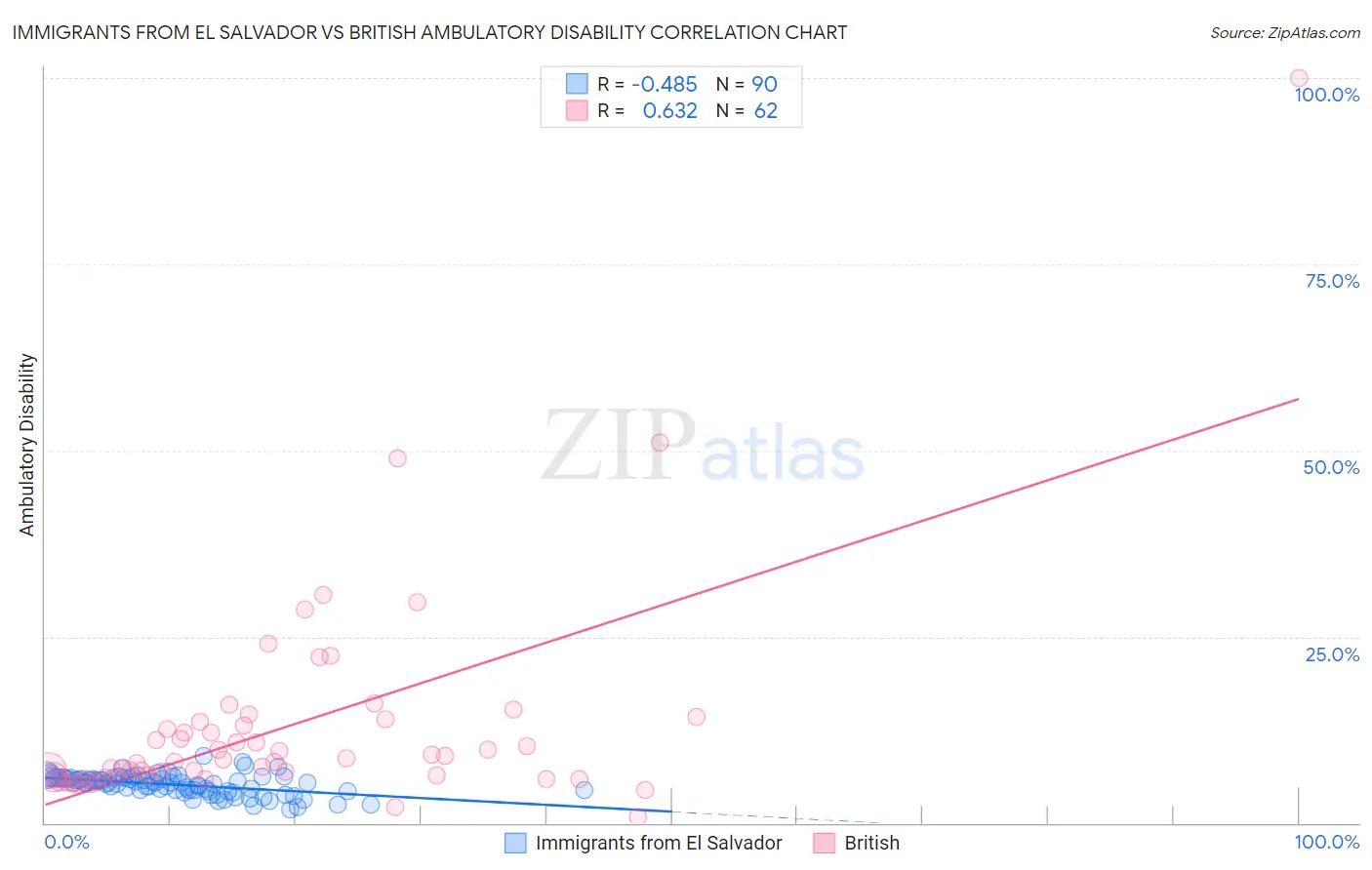 Immigrants from El Salvador vs British Ambulatory Disability Correlation Chart