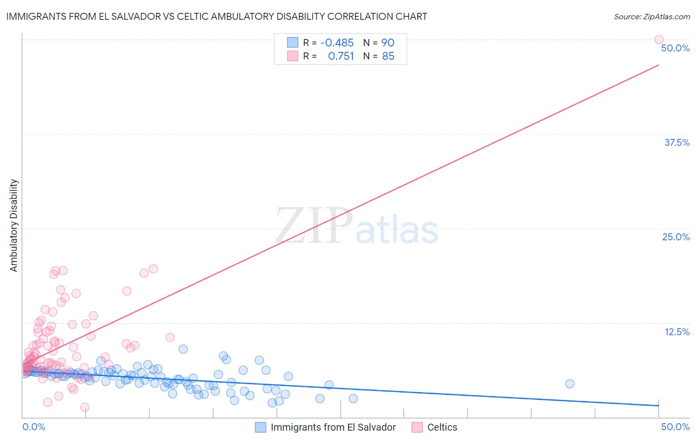 Immigrants from El Salvador vs Celtic Ambulatory Disability Correlation Chart