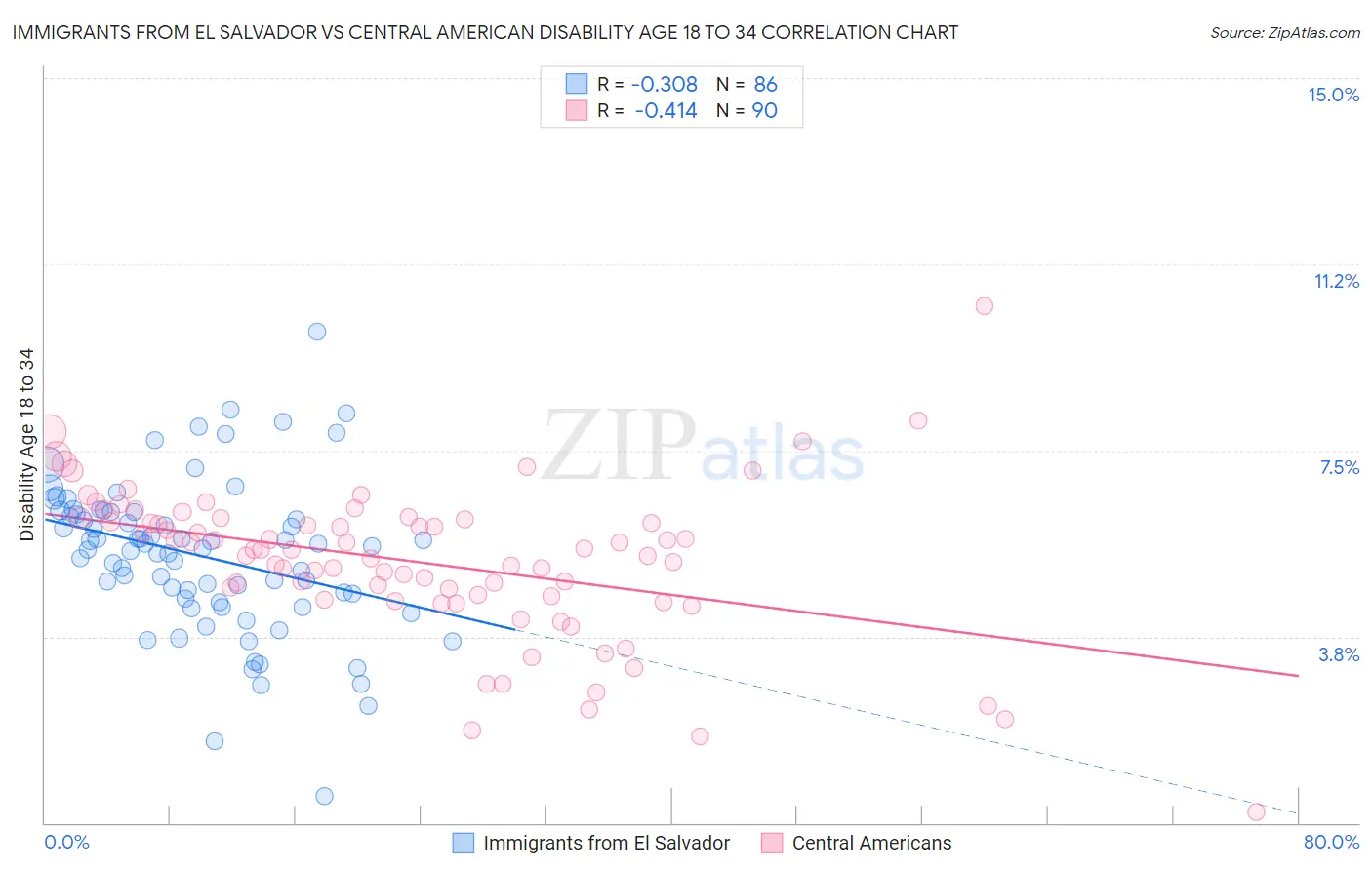 Immigrants from El Salvador vs Central American Disability Age 18 to 34 Correlation Chart