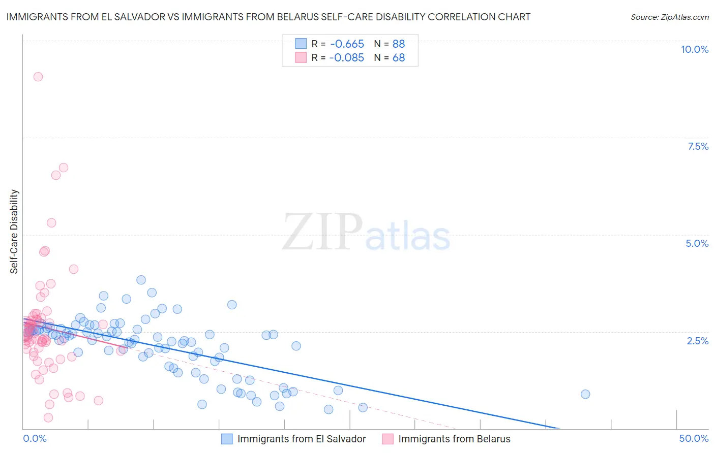 Immigrants from El Salvador vs Immigrants from Belarus Self-Care Disability Correlation Chart