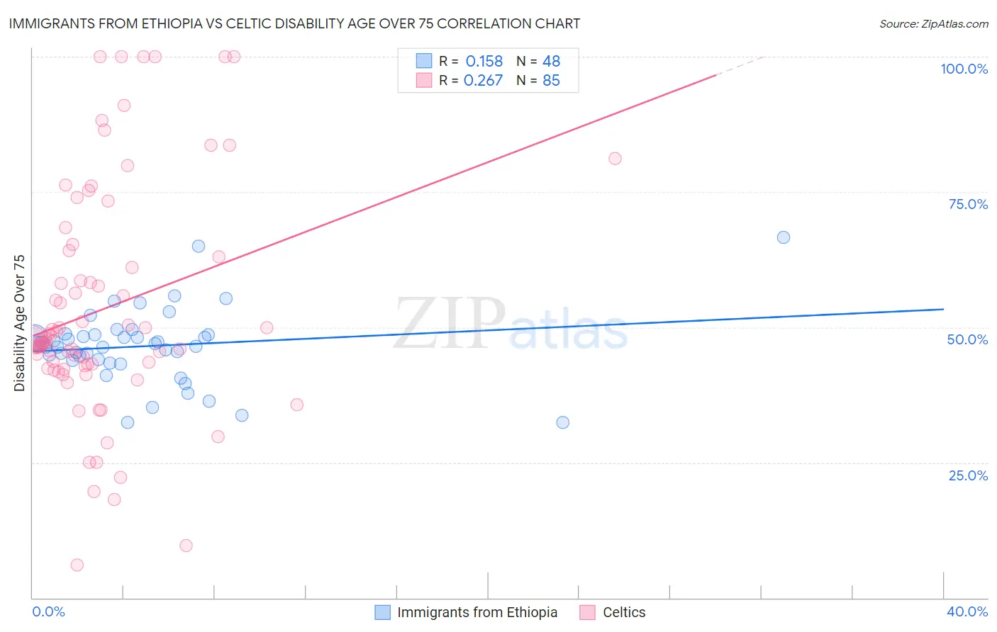 Immigrants from Ethiopia vs Celtic Disability Age Over 75 Correlation Chart