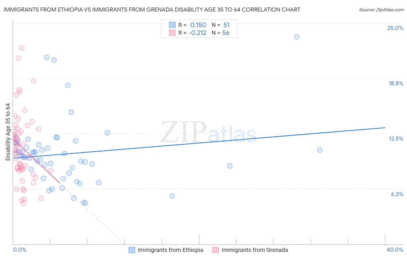 Immigrants from Ethiopia vs Immigrants from Grenada Disability Age 35 to 64 Correlation Chart