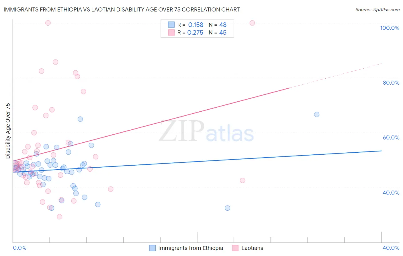 Immigrants from Ethiopia vs Laotian Disability Age Over 75 Correlation Chart