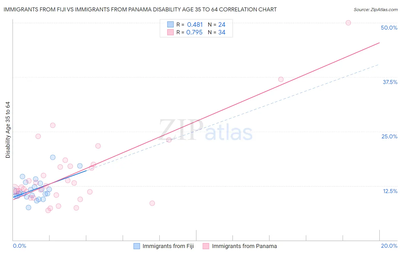 Immigrants from Fiji vs Immigrants from Panama Disability Age 35 to 64 Correlation Chart
