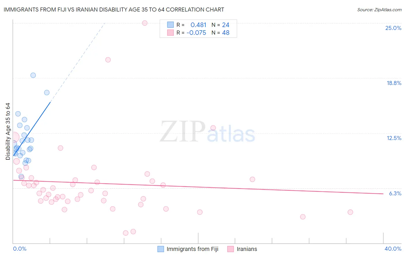 Immigrants from Fiji vs Iranian Disability Age 35 to 64 Correlation Chart