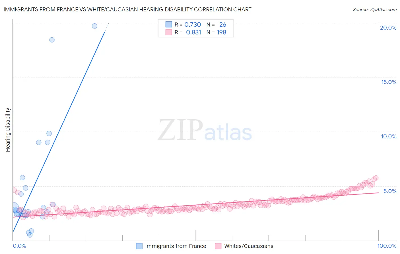 Immigrants from France vs White/Caucasian Hearing Disability Correlation Chart