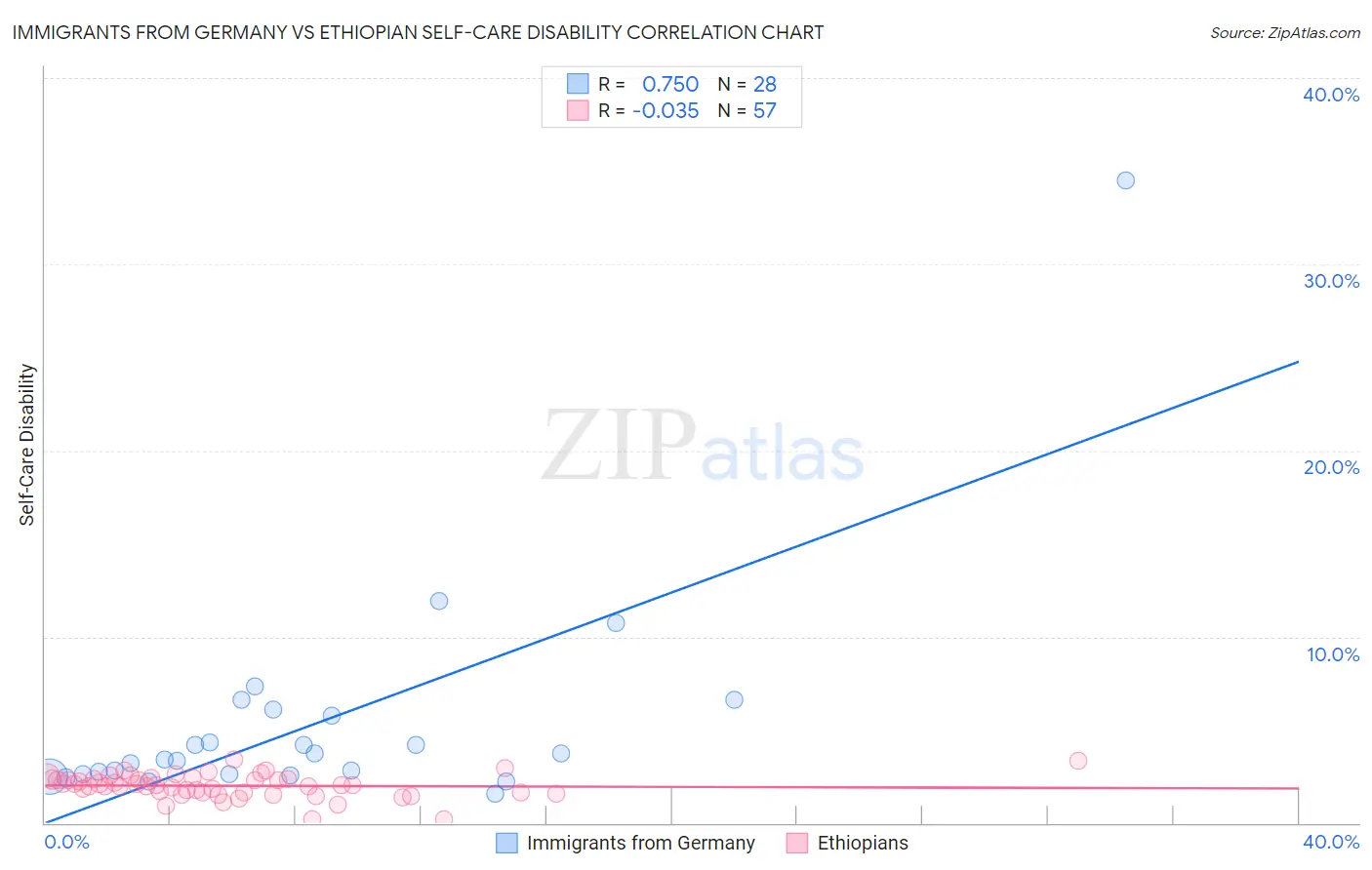 Immigrants from Germany vs Ethiopian Self-Care Disability Correlation Chart