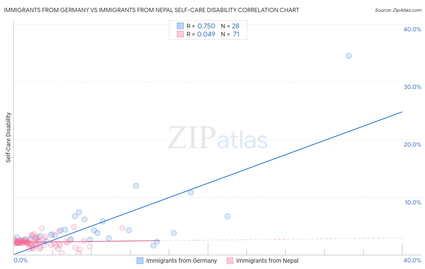 Immigrants from Germany vs Immigrants from Nepal Self-Care Disability Correlation Chart