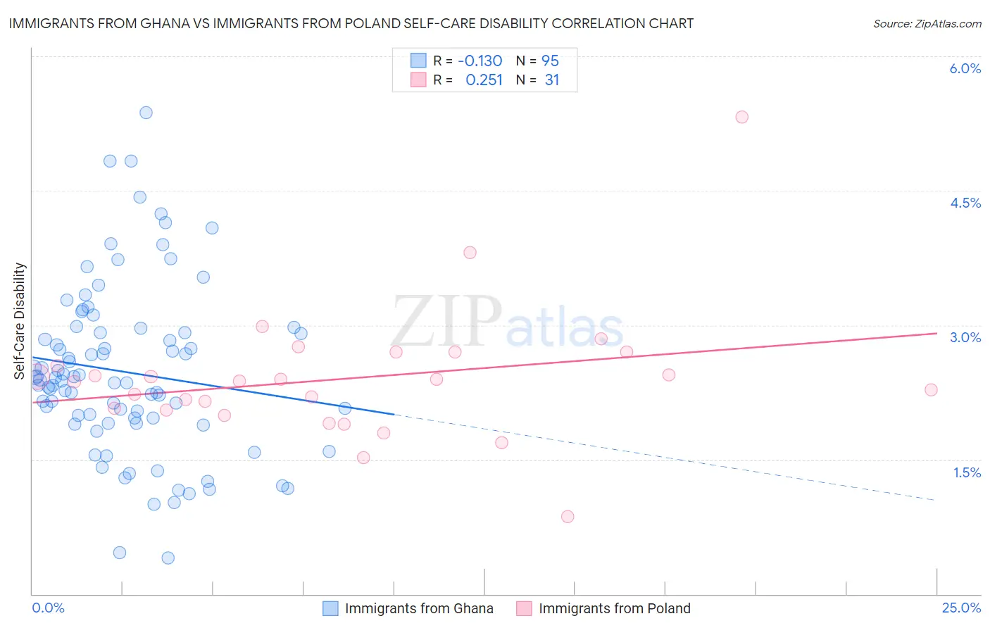 Immigrants from Ghana vs Immigrants from Poland Self-Care Disability Correlation Chart