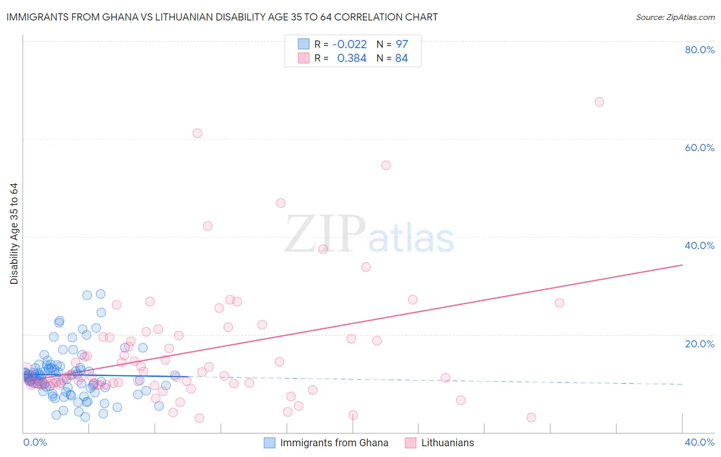 Immigrants from Ghana vs Lithuanian Disability Age 35 to 64 Correlation Chart