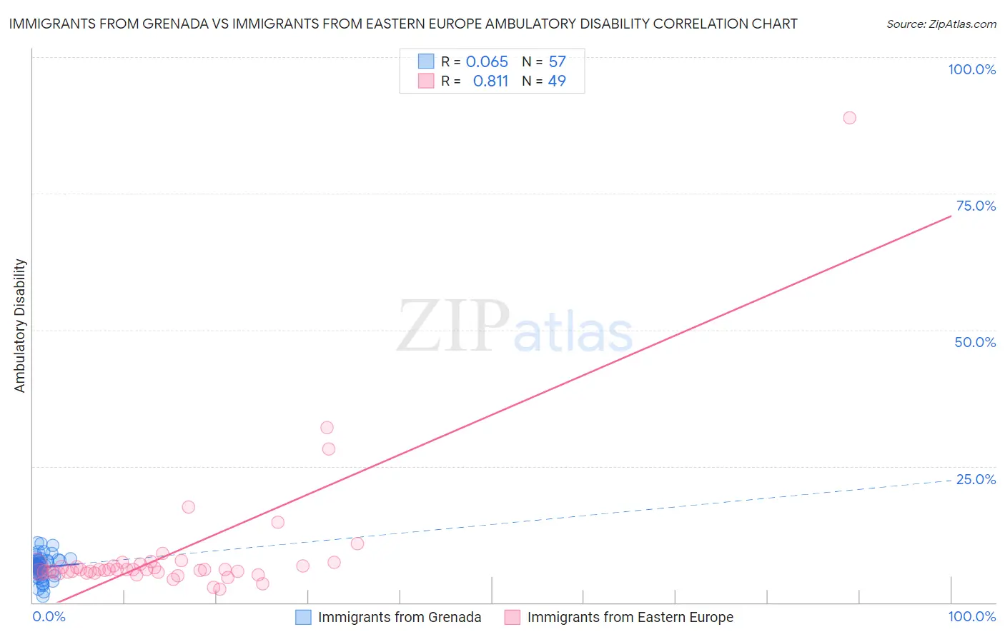 Immigrants from Grenada vs Immigrants from Eastern Europe Ambulatory Disability Correlation Chart