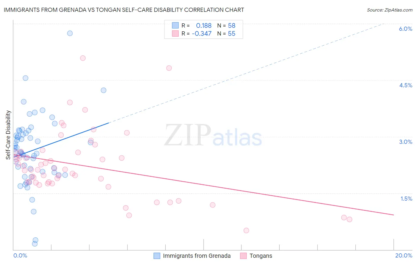 Immigrants from Grenada vs Tongan Self-Care Disability Correlation Chart